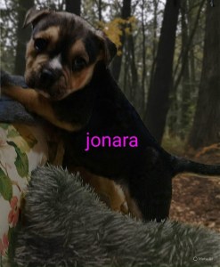 This is jonara! She was born 11/29/25 she is the littlest of the bunch but don’t let that fool you, she is a spitfire. She is hound mix and is Utd/wormed/vet checked and waiting for a family of her own.